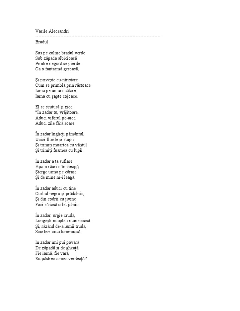 Bradul De Vasile Alecsandri Poezii Si Versuri