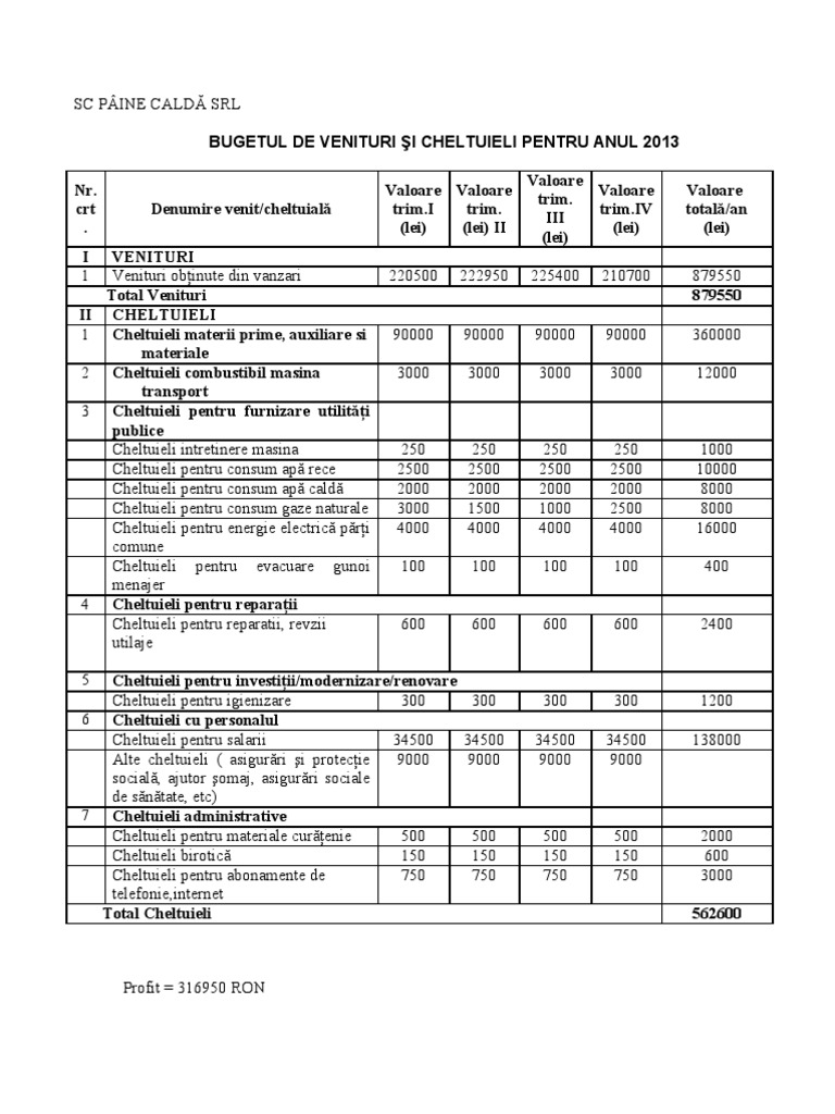Buget De Venituri Si Cheltuieli Societate Comerciala Model