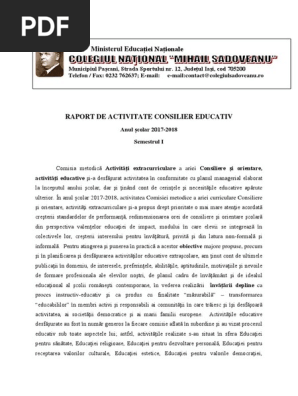 Raport De Activitate Consilier Educativ Sem I 2017 2018