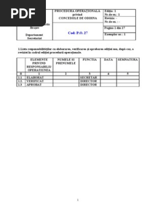 Procedura Operationala Privind Concediile De Odihna