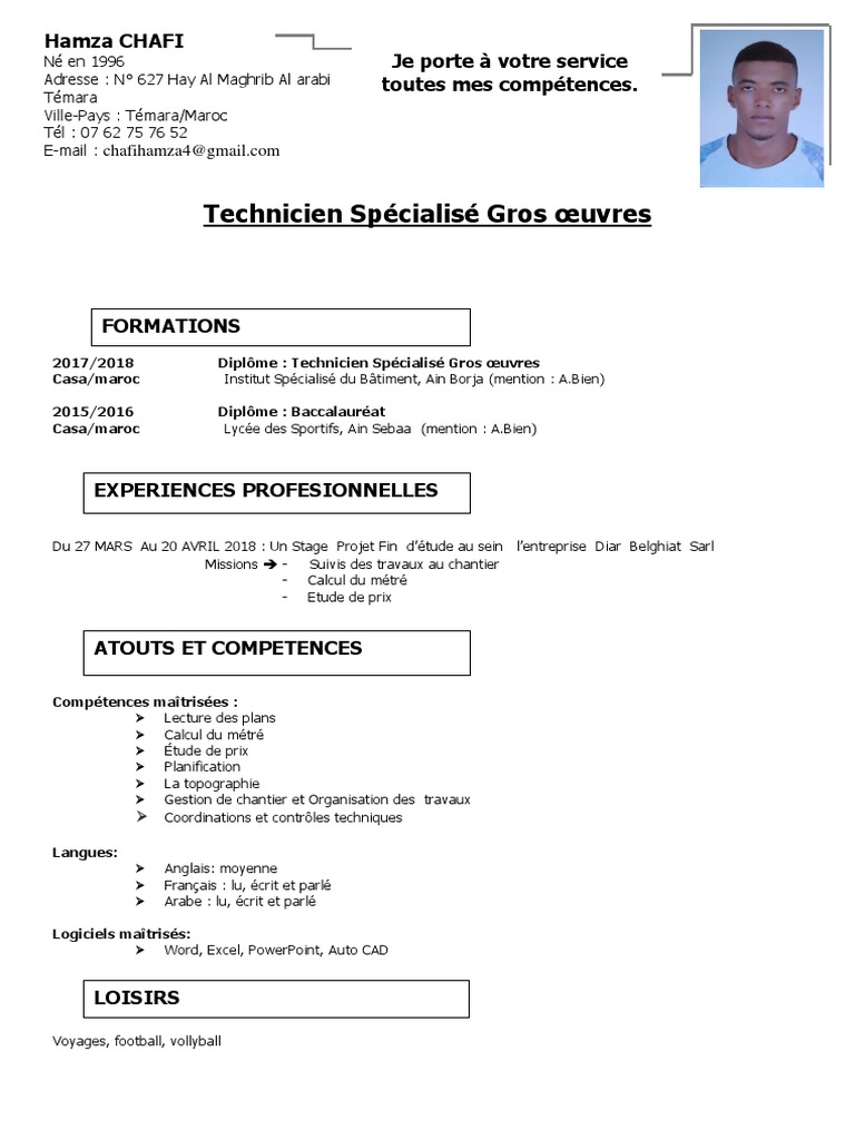 Technicien Specialise Gros œuvres Hamza Chafi Je Porte A Votre Service Toutes Mes Competences