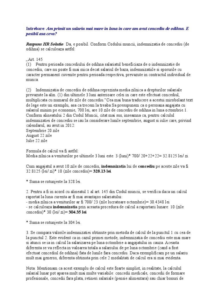Mod De Calcul Concediu Odihnă
