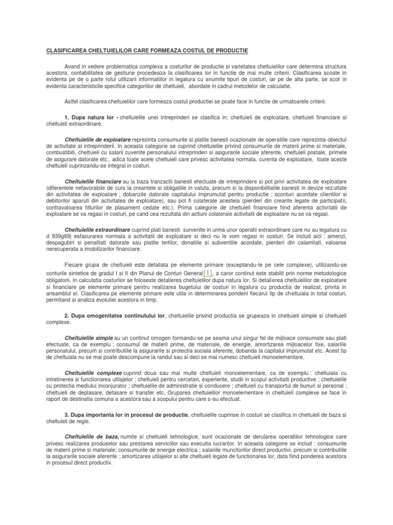 Clasificarea Cheltuielilor Care Formeaza Costul De Productie