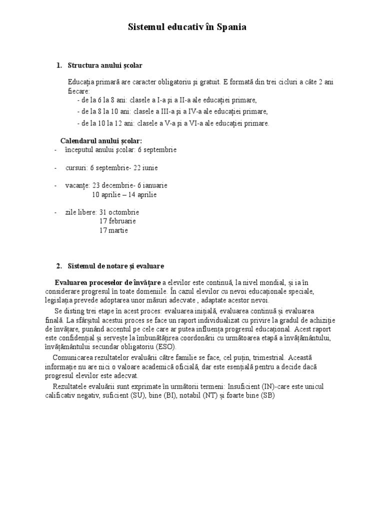 Invatamantul In Spania