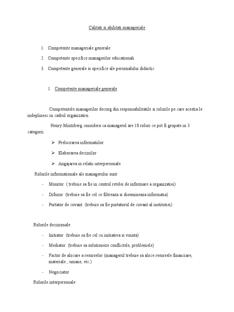 Referat Profilul Calitatile Si Pregatirea Unui Manager 386875 Graduo